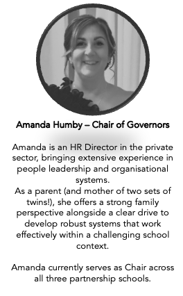 | Mrs Amanda Humby | Chair of Governors | Chair of all partnership schools |