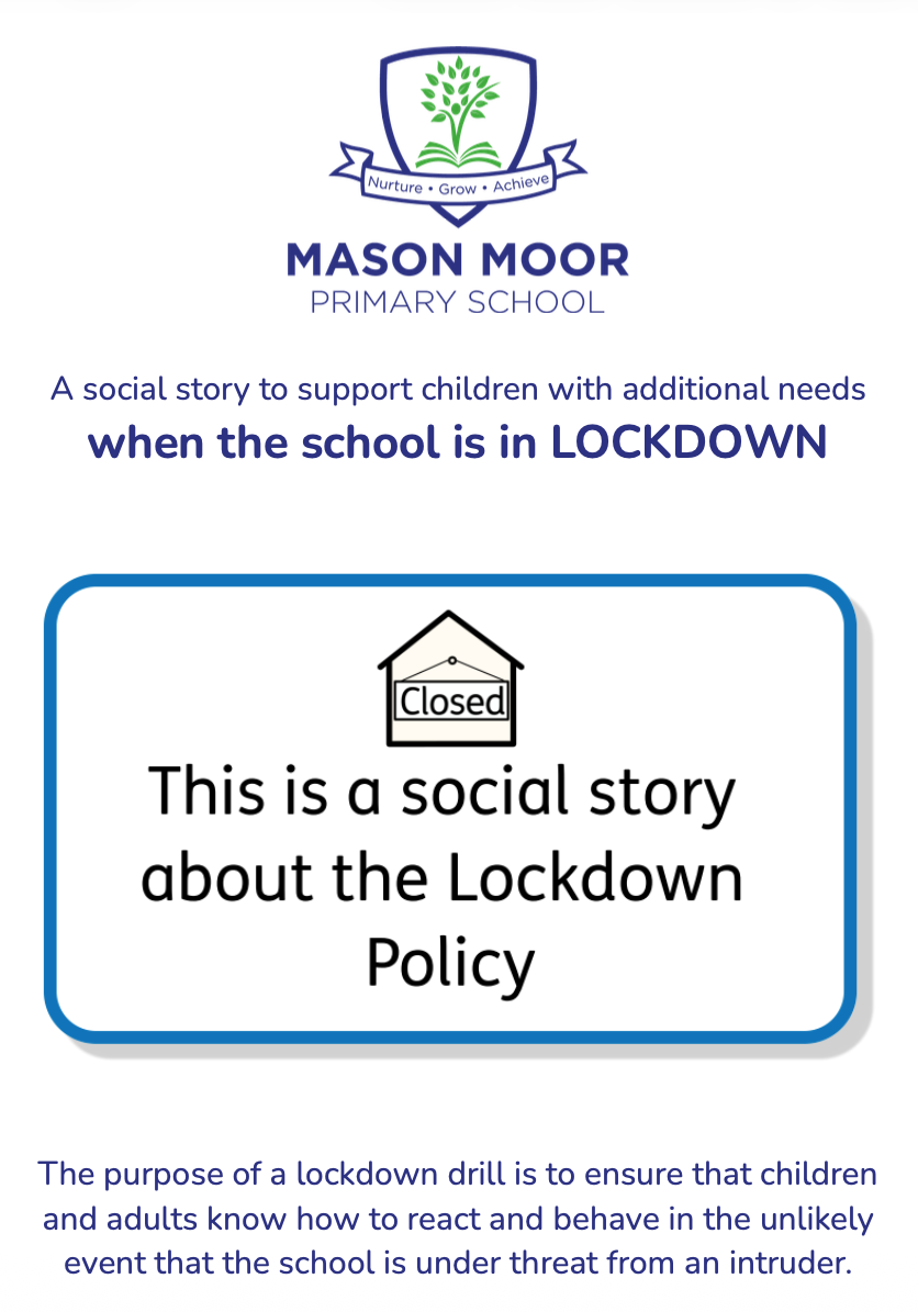 See below - our Lockdown Procedure for sharing as a social story for children with additional needs.